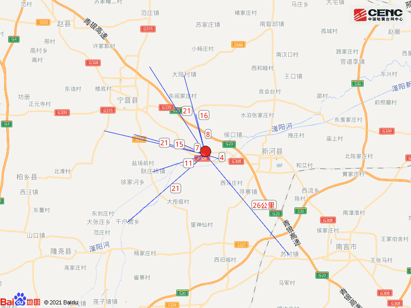 附近村镇:本次地震周边5公里内的村庄有艾辛庄一村、赵家庄村、城北村、邱头村、艾辛庄二村、艾辛庄三村、荆家庄村、铺头村、北官庄村、西杨家庄村,20公里内的乡镇有荆家庄乡、东汪镇、大陆村镇、唐邱镇、贾家口镇、大曹庄镇、耿庄桥镇、北河庄镇、苏村镇、千户营乡。 有石家庄网友称有震感,还有网友称“第一次感觉楼体直接晃动”。 潇湘晨报综合